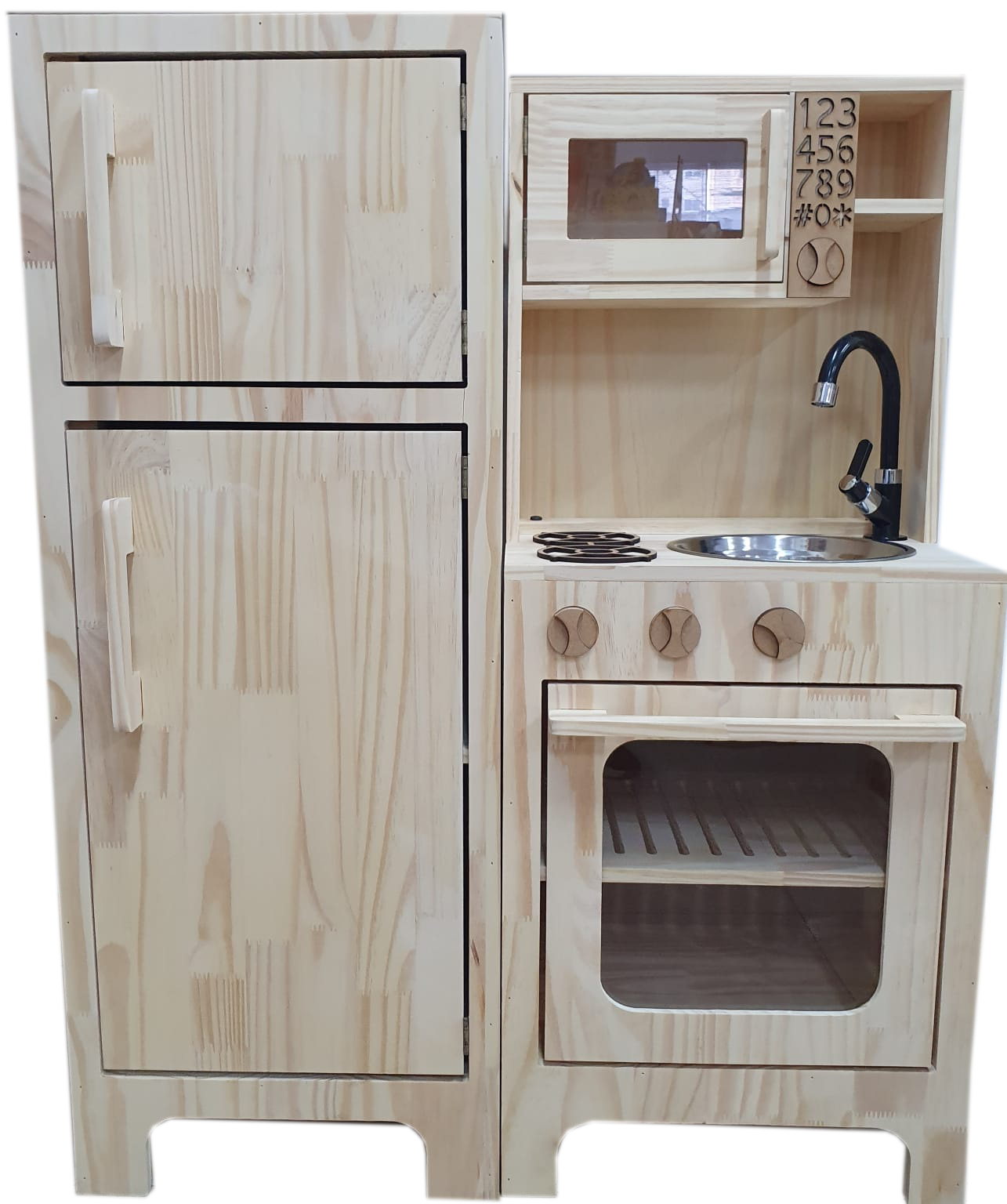 A Cozinha Montessoriana Pequena com Geladeira, possue design moderno e tem tudo que uma cozinha de verdade possui.