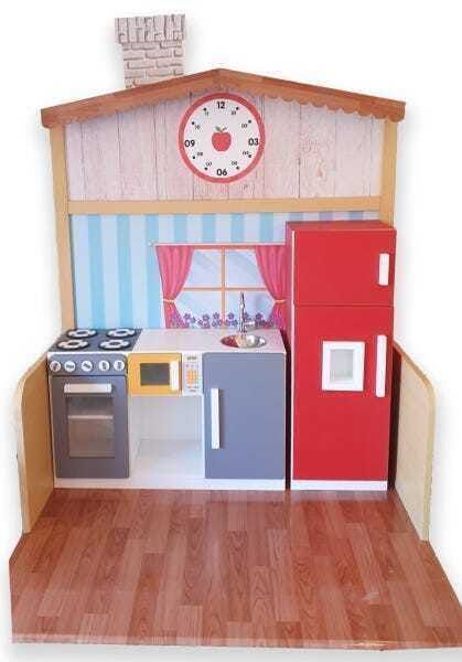 Uma mini cidade sob o tema Casa Lar Doce Lar, formando um cenário de cozinha completa, para a garotada se divertir como se estivesse numa cozinha de verdade.